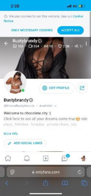My name is Brandy I am a luxury ebony companion who goes above and beyond to make sure our time is memorable. I carry myself exclusively with an easy going , well-mannered personality to match.I would love to take control of your mind while simultaneously focusing on everything your body craves. I am the perfect private delight ,and the best chocolate dessert. When contacting me please include a brief introduction name age race and time desired. 🚫no picture collecters 🚫low ballers 🚫 🚫absolutely no unsafe services . Xoxo all Outcalls require deposit no exceptions!(i dont care if someone else scammer you only have cash whatever the excuse is save it) Onlyfans @therealbustybrandy content available virtual 📸 dates available BDSM bondage STRAP ON , servant and master , sissy training, worshiping , tittles , roleplay crossdressing footfetish spanking